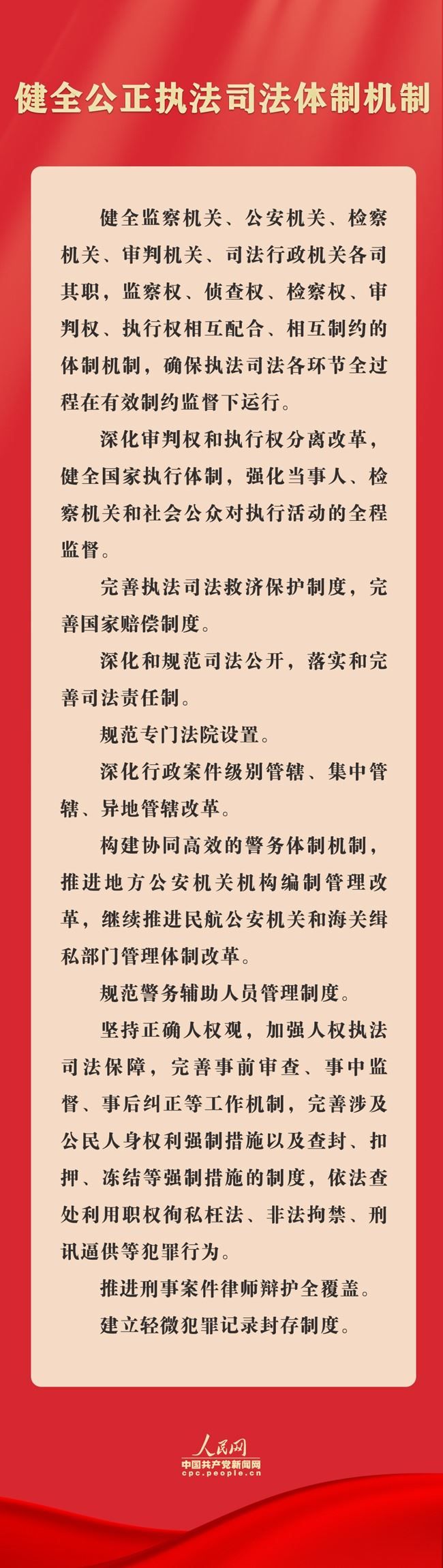 7月21日,《中共中央關(guān)于進(jìn)一步全面深化改革、推進(jìn)中國式現(xiàn)代化的決定》(以下簡稱《決定》)全文發(fā)布。其中對完善中國特色社會主義法治體系作出部署,重點圍繞深化立法領(lǐng)域改革、深入推進(jìn)依法行政、健全公正執(zhí)法司法體制機(jī)制、完善推進(jìn)法治社會建設(shè)機(jī)制、加強(qiáng)涉外法治建設(shè)等方面,提出了法治領(lǐng)域改革任務(wù)要求。