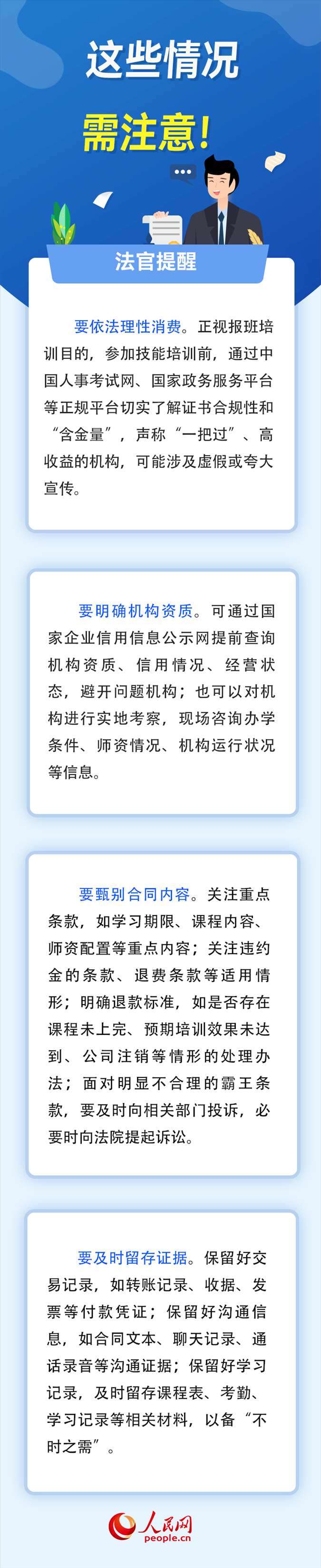 為掌握更多知識(shí)技能,“報(bào)培訓(xùn)班”成為越來(lái)越多人的選擇。然而,部分培訓(xùn)機(jī)構(gòu)虛假宣傳、半路關(guān)門(mén)、拒不退費(fèi)等套路讓消費(fèi)者防不勝防。如何識(shí)別培訓(xùn)報(bào)班中的“陷阱”、維護(hù)自身權(quán)益?對(duì)此,人民網(wǎng)采訪了北京市通州區(qū)人民法院法官助理李志峰。(高清揚(yáng) 實(shí)習(xí)生 李澤華)