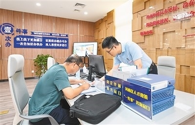 天津市河西區(qū)政務(wù)服務(wù)中心在天津率先設(shè)立“一件事”服務(wù)專(zhuān)廳,在“場(chǎng)景式”服務(wù)基礎(chǔ)上,審批人員還可提供金融融資等增值服務(wù),助力經(jīng)營(yíng)主體發(fā)展。圖為市民在服務(wù)專(zhuān)廳內(nèi)辦理業(yè)務(wù)。 新華社記者 孫凡越攝