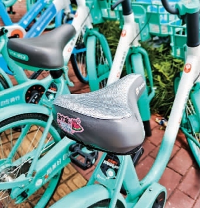 為了應(yīng)對(duì)炎熱天氣,上海街頭一些共享單車換上了“清涼坐墊”。王 初攝(人民視覺)