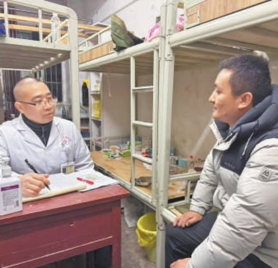 2月8日晚,在筠連縣第二中學校安置點,筠連縣中醫(yī)院的醫(yī)生正在了解安置群眾身體情況。