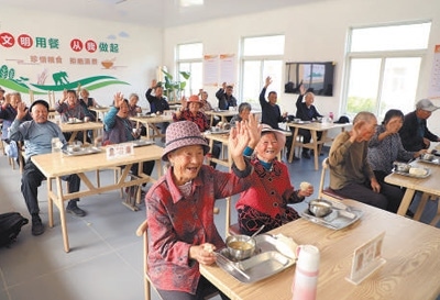 在山東省日照市東港區(qū)惠家下河村的擺渡愛(ài)心食堂,近20名75歲以上的鄉(xiāng)村老人匯聚在寬敞明亮的餐廳里,吃著熱乎乎的飯菜,臉上洋溢著舒心的笑容。