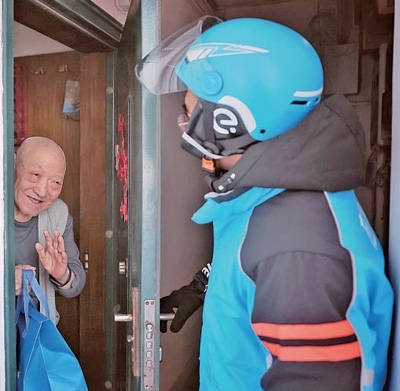 “今天上午風(fēng)挺大,氣溫也比較低,盡量穿厚點(diǎn),手套、帽子、圍脖等都配齊,防風(fēng)御寒效果會(huì)好些?!币辉纾浾呔褪盏酵赓u平臺(tái)騎手馬志鵬發(fā)來的提示信息。按照計(jì)劃,記者當(dāng)天將跟隨這位年輕騎手給社區(qū)老人送餐。