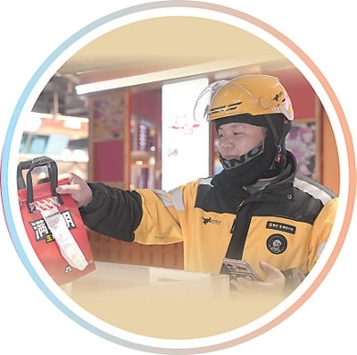 “在惡劣天氣時,大家出門不便,外賣需求會大增。下雨時,視線受阻,車輪比較滑;下雪時,道路容易結(jié)冰,容易出現(xiàn)側(cè)滑、翻車?!蓖鯀矃不貞洠ツ晗奶煸谒蛦瓮局?,一場暴雨倏忽而至。雨水順著雨衣縫隙灌向身體,不一會他就濕透了。平時只需要10分鐘左右的路程,他小心翼翼走了20多分鐘。當(dāng)他敲開客戶的房門送上外賣時,顧客明顯愣了一下:“大雨天辛苦大哥了?!彪S后,那名顧客給王叢叢遞上了紙和水,又叮囑他慢點走注意安全。這種來自陌生人的好意,讓王叢叢印象深刻。