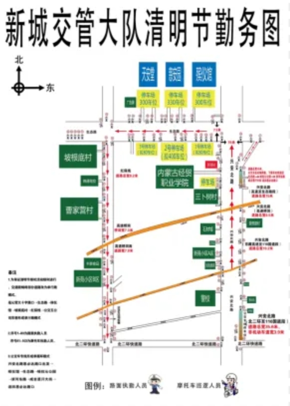 清明節(jié)假期新城區(qū)紅保線將實(shí)行單向通行。4 月 4 日至 4 月 6 日每日 6 點(diǎn)-14 點(diǎn)紅保線將實(shí)行單向通行,祭掃市民可從呼哈線紅保線交匯處經(jīng)過原呼和浩特市殯儀館、慈安園 、天安堂至坡根底村處向南行駛可返回市區(qū),Y371(省道104至野馬圖路)調(diào)整為單行,只能由西向東行駛。同時(shí)建議市民盡量選擇公交車等綠色出行方式,乘坐公交車36路58路在國家北方足球訓(xùn)練基地下車即可。