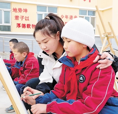 2023年,高潮從山西大同大學(xué)美術(shù)學(xué)院畢業(yè)前,看到了西部計(jì)劃的招募信息。“要去那么遠(yuǎn)的地方當(dāng)老師嗎?”高潮有點(diǎn)猶豫。她小時(shí)候在鄉(xiāng)村小學(xué)讀書,因?yàn)槔蠋熒?,很多課程都開展不起來,“想到自己小時(shí)候的經(jīng)歷,我下定了決心。”