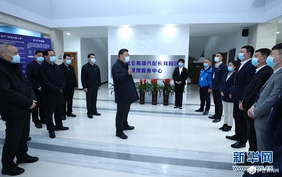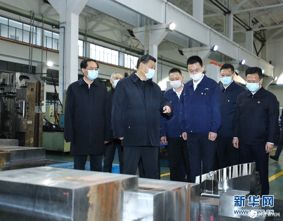 3月29日至4月1日,中共中央總書記、國家主席、中央軍委主席習(xí)近平在浙江考察。這是3月29日,習(xí)近平在寧波北侖大碶高端汽配模具園區(qū)考察中小型民營制造業(yè)企業(yè)寧波臻至機械模具有限公司,聽取企業(yè)生產(chǎn)經(jīng)營及復(fù)工復(fù)產(chǎn)情況介紹。 新華社記者 鞠鵬 攝