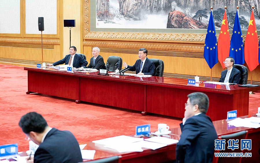 新華社北京9月14日電國家主席習近平14日晚在北京同歐盟輪值主席國德國總理默克爾、歐洲理事會主席米歇爾、歐盟委員會主席馮德萊恩共同舉行會晤,會晤以視頻方式舉行。中德歐領(lǐng)導人就中歐關(guān)系深入交換意見,為下階段中歐關(guān)系規(guī)劃方向,確定重點領(lǐng)域,一致同意加強溝通協(xié)調(diào)合作,確保今后中歐之間一系列重大政治議程取得成功,深化互信,實現(xiàn)互利共贏,堅持維護多邊主義,共同應(yīng)對全球性挑戰(zhàn),推動中歐關(guān)系邁向更高水平。中歐雙方宣布簽署《中歐地理標志協(xié)定》,確認加快中歐投資協(xié)定談判,實現(xiàn)年內(nèi)完成談判的目標。中歐決定建立環(huán)境與氣候高層對話和數(shù)字領(lǐng)域高層對話,打造中歐綠色合作伙伴、數(shù)字合作伙伴關(guān)系。