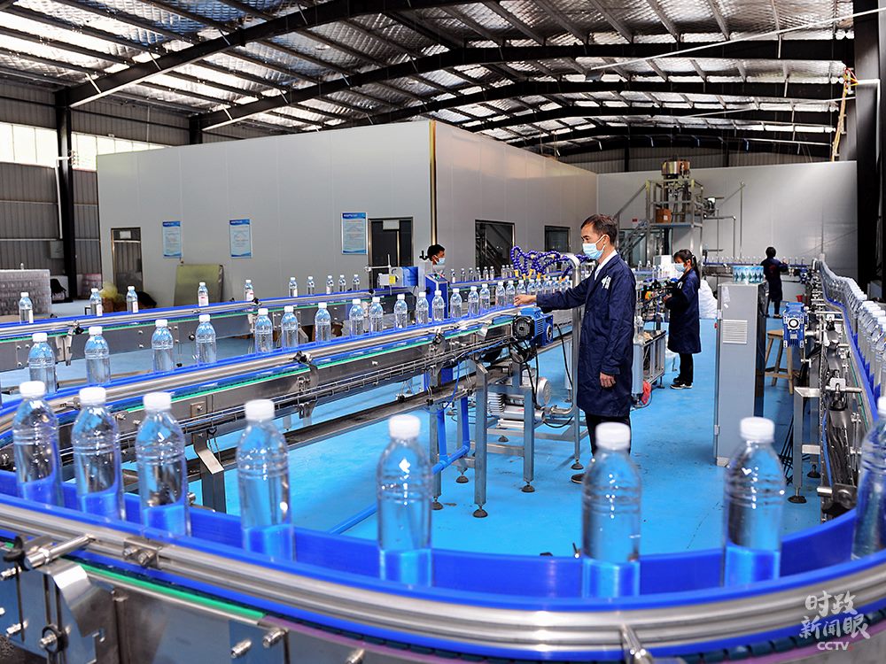 △湖南邵陽市桐山鄉(xiāng)椒林村充分利用當?shù)厣饺Y源,加工生產(chǎn)瓶裝水。