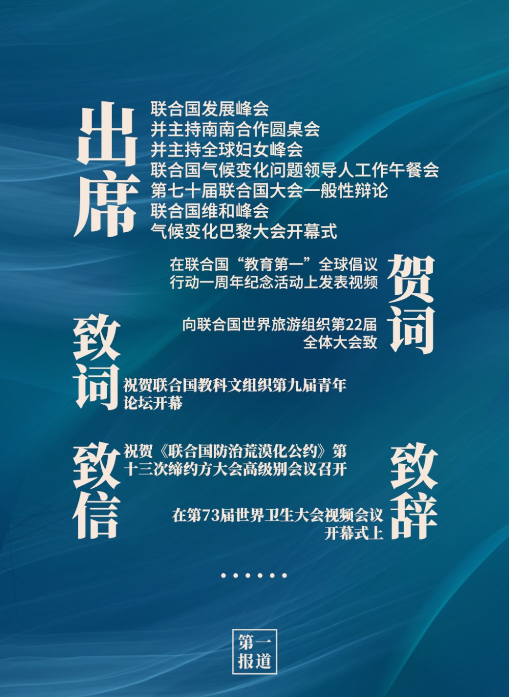2013年以來,習(xí)主席通過出席聯(lián)合國活動(dòng)、向聯(lián)合國活動(dòng)致信函等方式,進(jìn)一步深化中國同聯(lián)合國的合作,為維護(hù)世界和平、促進(jìn)共同繁榮、完善全球治理貢獻(xiàn)中國智慧,注入中國動(dòng)力。