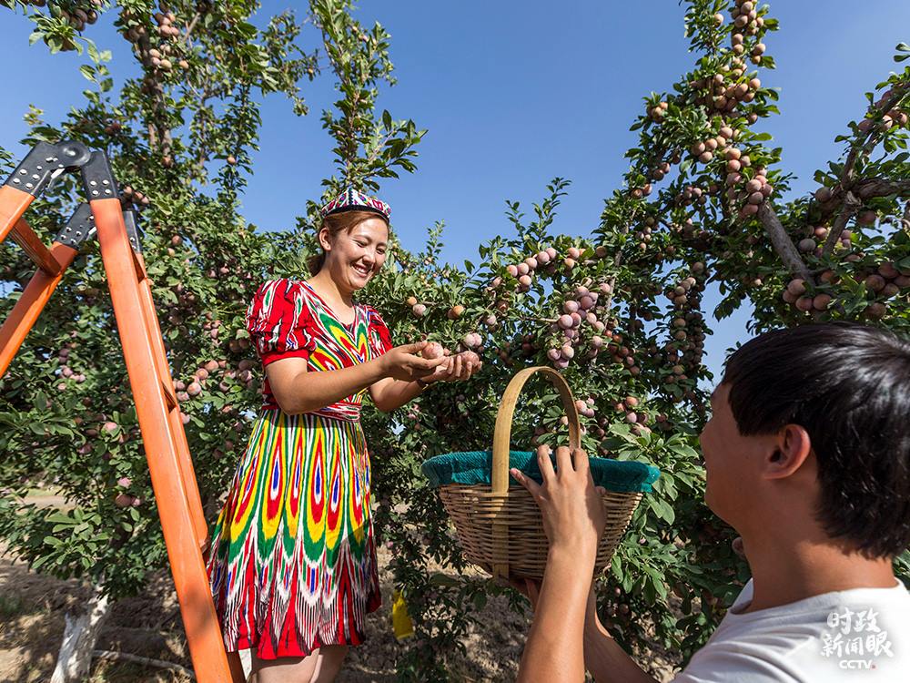 △新疆阿克陶縣村民在林果基地為桃樹打枝,林間同時套種了西瓜。