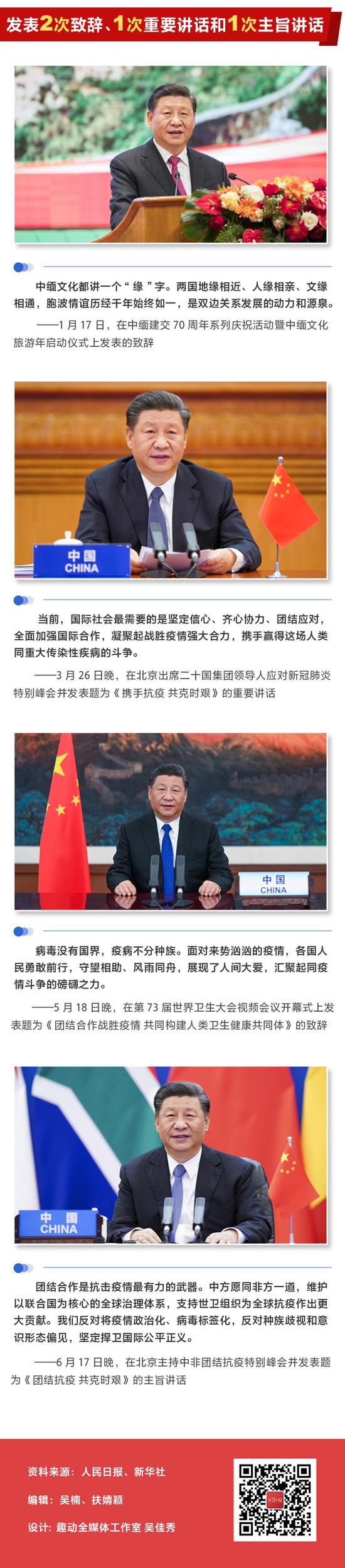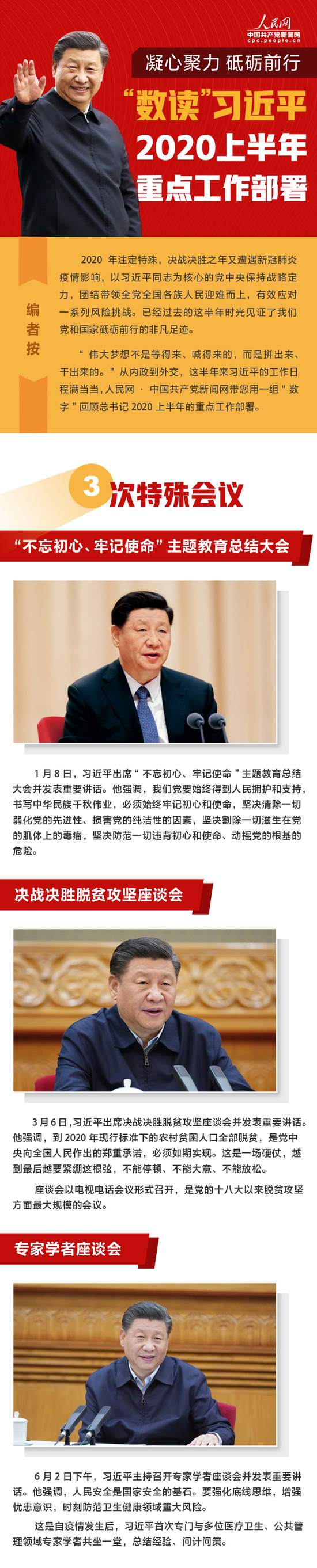 細(xì)數(shù)今年上半年,習(xí)近平夙夜在公,勤勉工作,不斷刷新“忙碌指數(shù)”:數(shù)十次出席重要會(huì)議部署各項(xiàng)工作,8次國(guó)內(nèi)考察,調(diào)研足跡遍及7省區(qū)市,3次出席國(guó)際重要會(huì)議并發(fā)表講話(huà),20余次致信、回信海內(nèi)外人士,60次就疫情防控等話(huà)題與40余位外國(guó)政要和國(guó)際組織負(fù)責(zé)人通電話(huà)……人民網(wǎng)·中國(guó)共產(chǎn)黨新聞網(wǎng)推出系列圖解報(bào)道,帶您全方面回顧習(xí)近平的2020上半年。