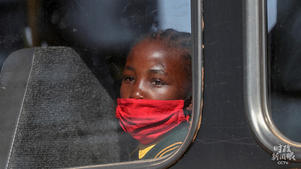 △南非約翰內(nèi)斯堡,公交車里向外張望的女孩。