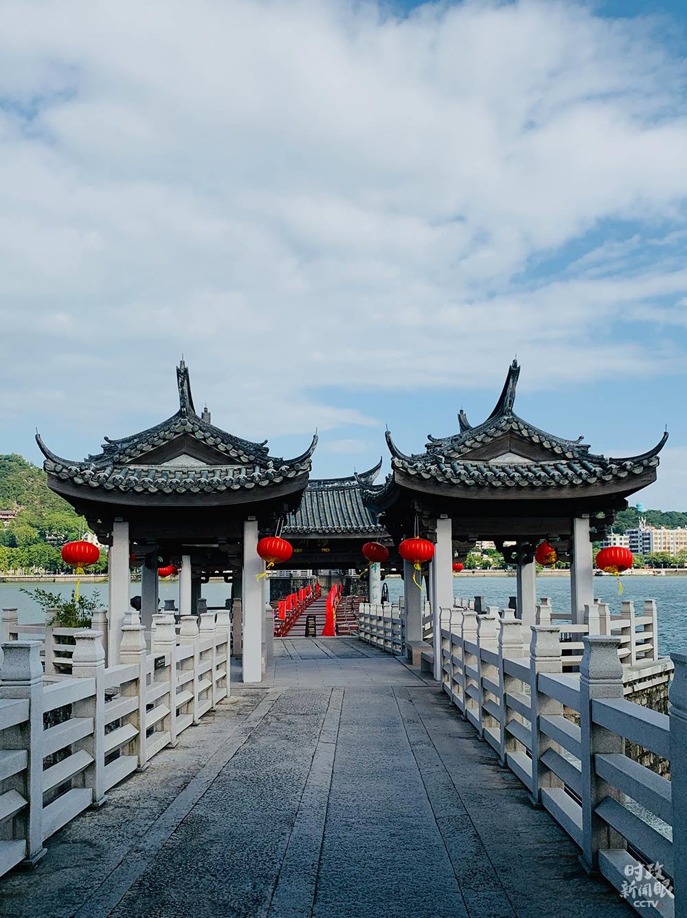 △廣濟橋中間有18艘木船。(總臺央視記者黃東旭、趙晨拍攝)