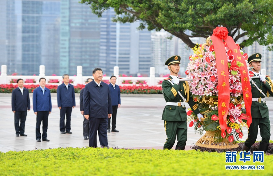 10月14日,深圳經(jīng)濟(jì)特區(qū)建立40周年慶祝大會(huì)在廣東省深圳市隆重舉行。中共中央總書記、國家主席、中央軍委主席習(xí)近平在會(huì)上發(fā)表重要講話。這是當(dāng)天下午,習(xí)近平來到蓮花山公園,向鄧小平同志銅像敬獻(xiàn)花籃。 新華社記者 李響 攝