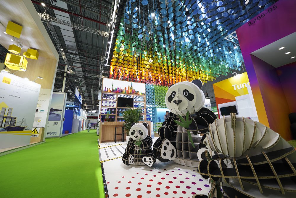 △在國家會展中心(上海)西入口處,吉祥物熊貓“進(jìn)寶”歡迎進(jìn)博會各國嘉賓。