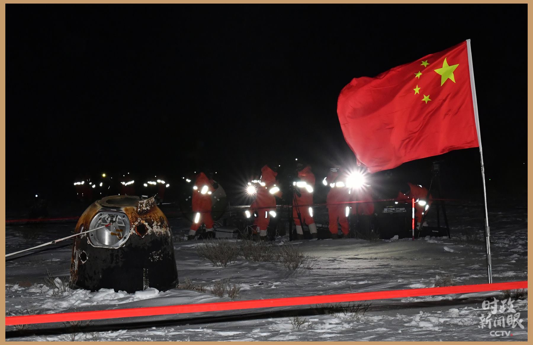 △2020年12月17日凌晨,嫦娥五號返回器攜帶月球樣品,在內蒙古四子王旗預定區(qū)域安全著陸。
