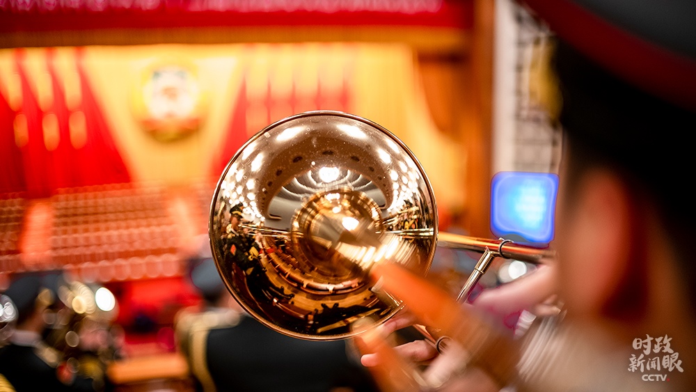 △開(kāi)幕會(huì)上,軍樂(lè)團(tuán)演奏國(guó)歌。(總臺(tái)央視記者王威拍攝)