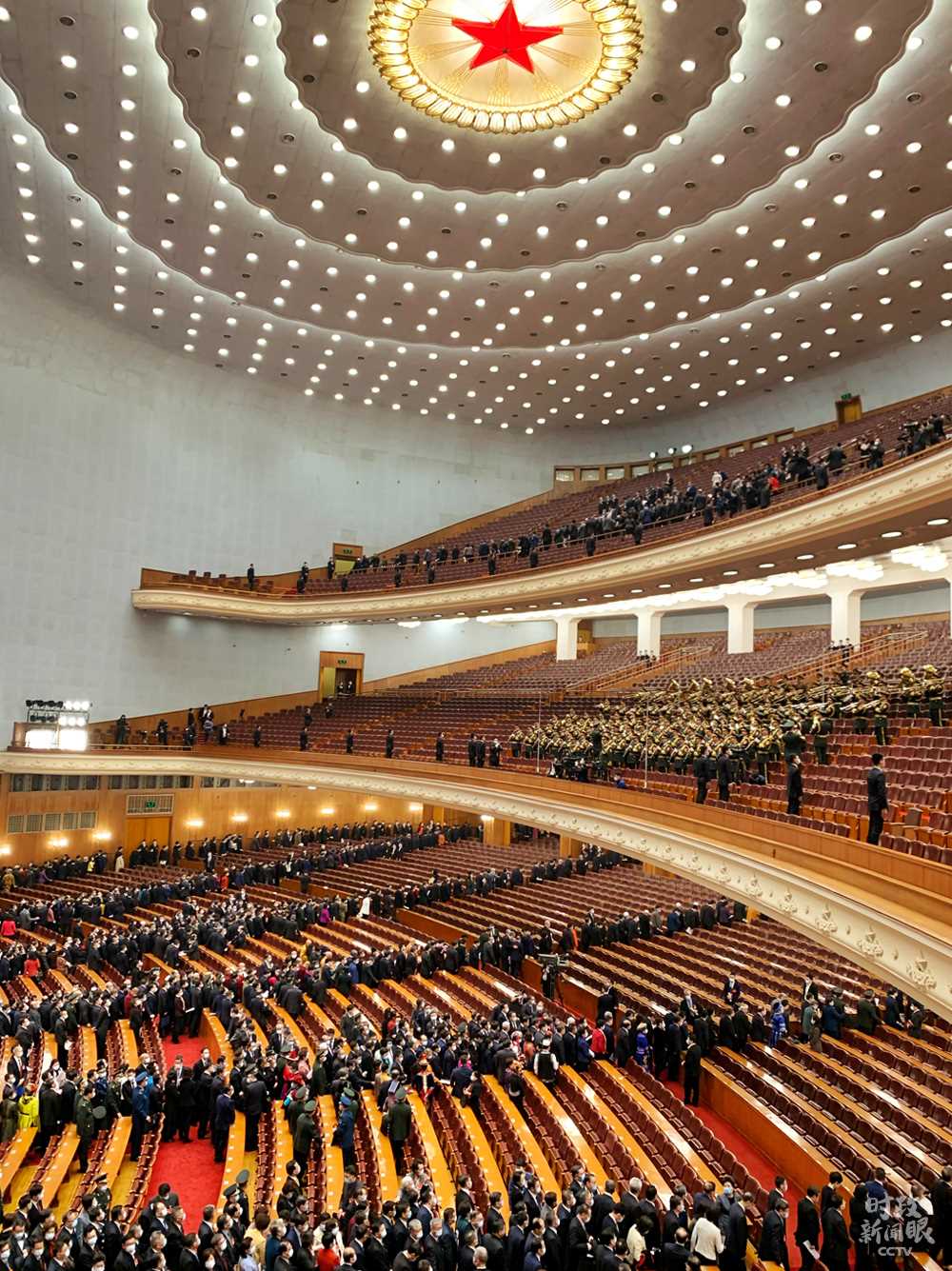 △開(kāi)幕會(huì)結(jié)束后,委員們離開(kāi)會(huì)場(chǎng)。(總臺(tái)央視記者程鋮拍攝)