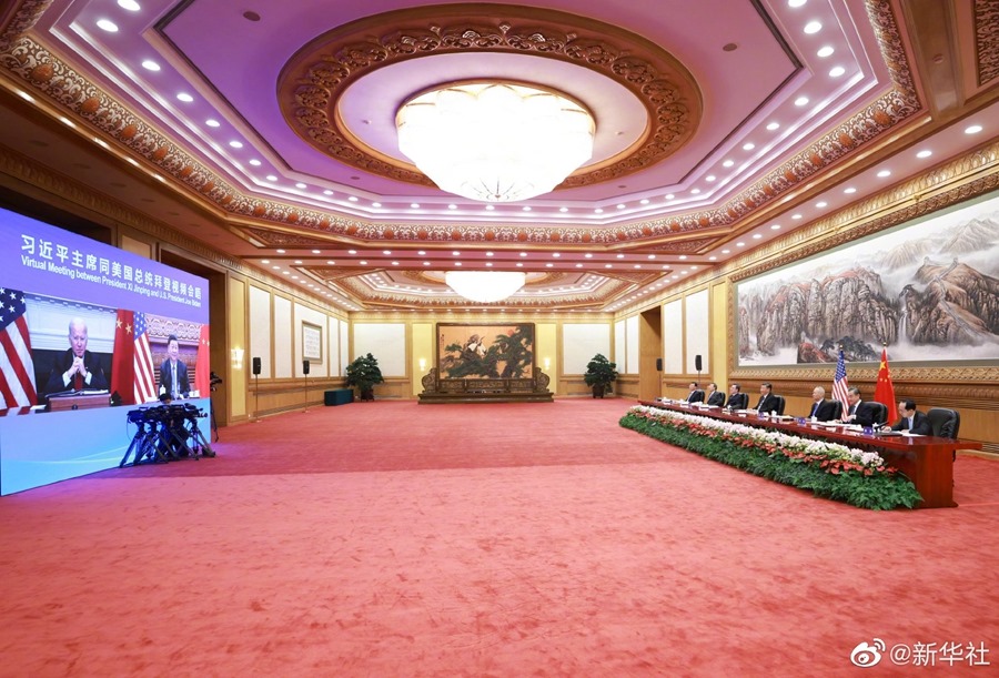新華社北京11月16日電 國(guó)家主席習(xí)近平11月16日上午同美國(guó)總統(tǒng)拜登舉行視頻會(huì)晤。雙方就事關(guān)中美關(guān)系發(fā)展的戰(zhàn)略性、全局性、根本性問(wèn)題以及共同關(guān)心的重要問(wèn)題進(jìn)行了充分、深入的溝通和交流。