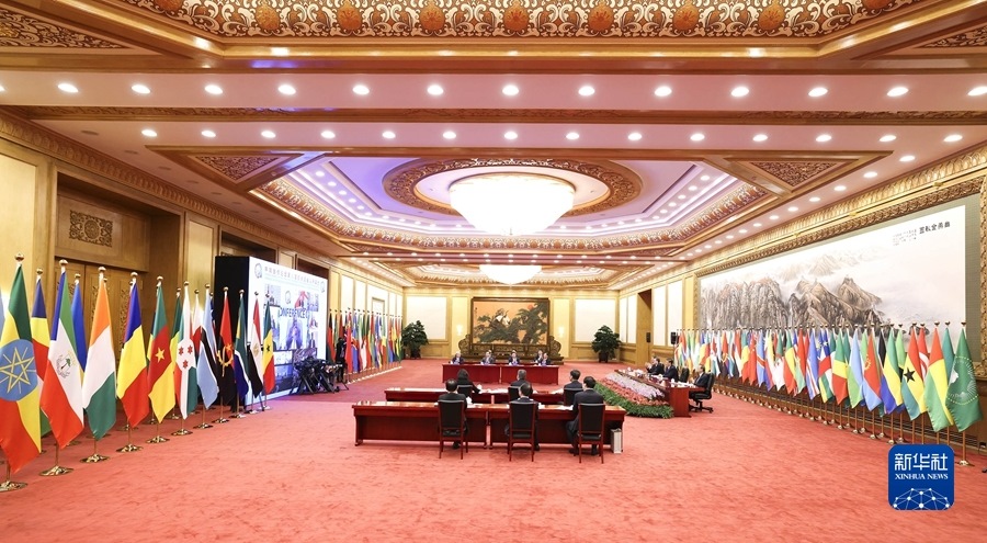 11月29日晚,國(guó)家主席習(xí)近平在北京以視頻方式出席中非合作論壇第八屆部長(zhǎng)級(jí)會(huì)議開(kāi)幕式并發(fā)表題為《同舟共濟(jì),繼往開(kāi)來(lái),攜手構(gòu)建新時(shí)代中非命運(yùn)共同體》的主旨演講。新華社記者 劉彬 攝