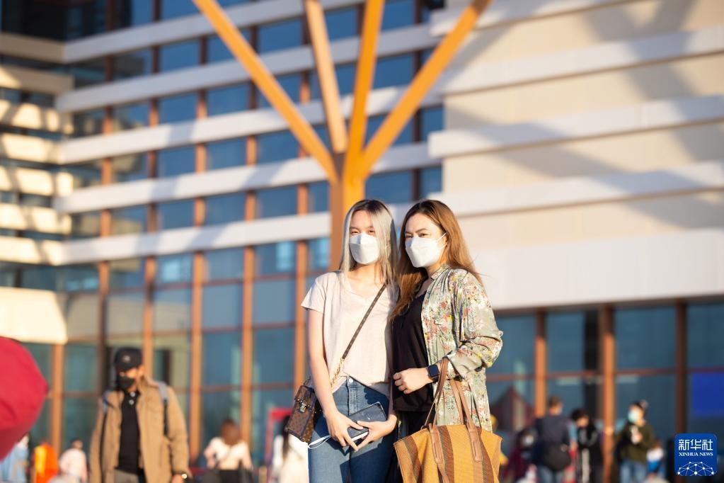 2021年12月12日,旅客在中老鐵路萬象站廣場拍照。新華社記者 章建華 攝