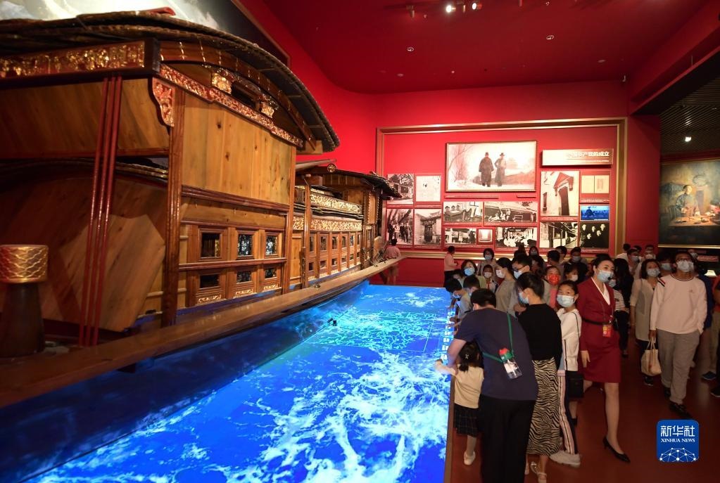 黨員在上海中共一大紀念館重溫入黨誓詞(2021年6月3日攝)。新華社記者劉穎攝