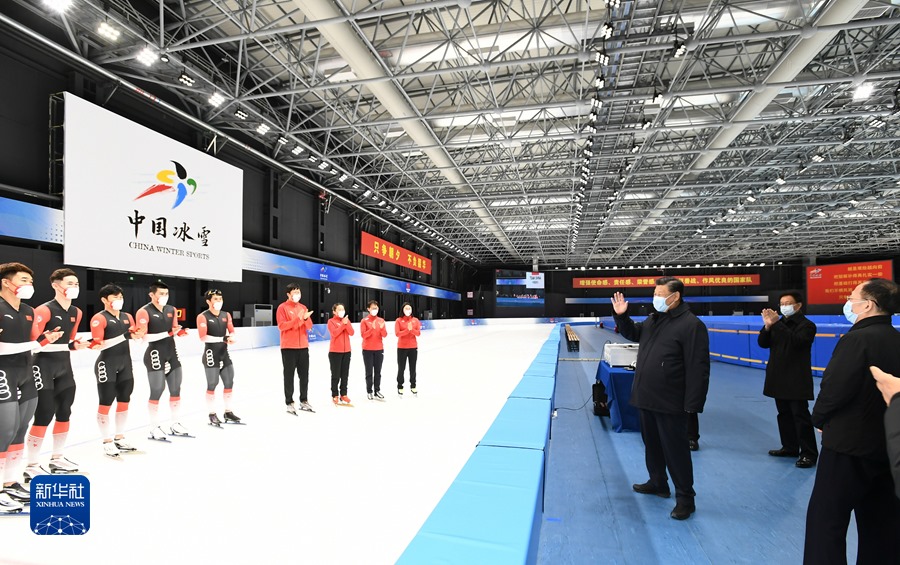 2022年1月4日,中共中央總書(shū)記、國(guó)家主席、中央軍委主席習(xí)近平在北京考察2022年冬奧會(huì)、冬殘奧會(huì)籌辦備賽工作。這是4日下午,習(xí)近平在二七廠冰雪項(xiàng)目訓(xùn)練基地速滑館,向參訓(xùn)運(yùn)動(dòng)員、教練員表示慰問(wèn)。新華社記者謝環(huán)馳攝