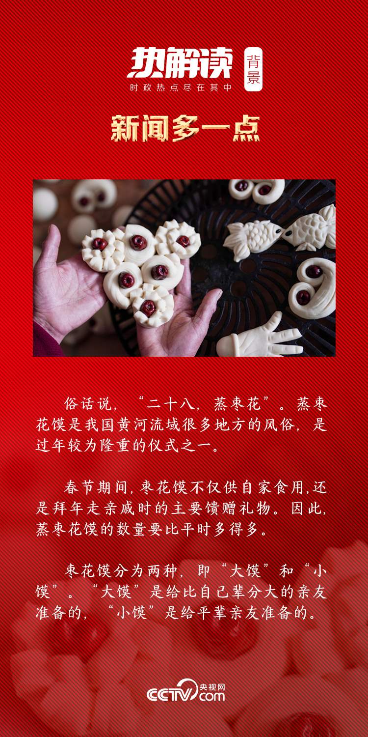 圓形的面坨裹著紅彤彤的大棗越堆越高,總書記細(xì)心地做了一塊棗花饃,疊放上去,寓意步步登高。