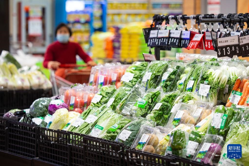 2022年1月12日,顧客在南京一家超市內(nèi)選購(gòu)蔬菜。新華社發(fā)(蘇陽(yáng) 攝)