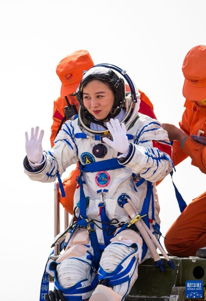 4月16日,神舟十三號(hào)載人飛船返回艙在東風(fēng)著陸場成功著陸。這是航天員王亞平安全順利出艙。新華社記者 連振 攝