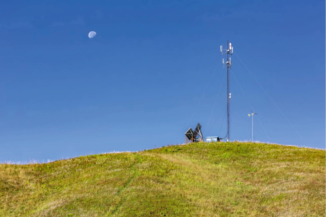 2019年9月19日,新疆維吾爾自治區(qū)伊犁哈薩克自治州新源縣那拉提鎮(zhèn),草原移動(dòng)信號(hào)塔。