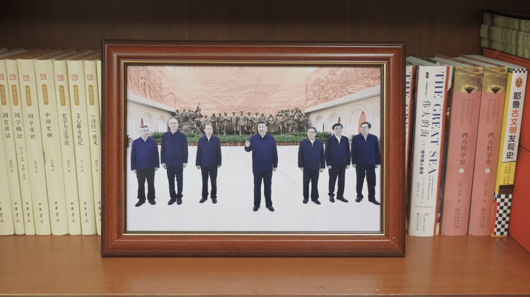 “江山就是人民,人民就是江山。”人民群眾的每一件事,就是習(xí)近平總書記心頭牽掛的事。書架上增加了三張總書記2022年在國內(nèi)多地考察的照片,記錄著總書記繁忙奔走的身影。