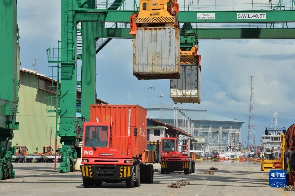 這是2022年1月1日拍攝的正在進(jìn)行集裝箱裝卸作業(yè)的文萊摩拉港碼頭。文萊摩拉港由中國和文萊合資企業(yè)——摩拉港有限公司運(yùn)營(yíng)。2022年1月1日,區(qū)域全面經(jīng)濟(jì)伙伴關(guān)系協(xié)定(RCEP)生效實(shí)施。新華社發(fā)(杰弗里·黃攝)