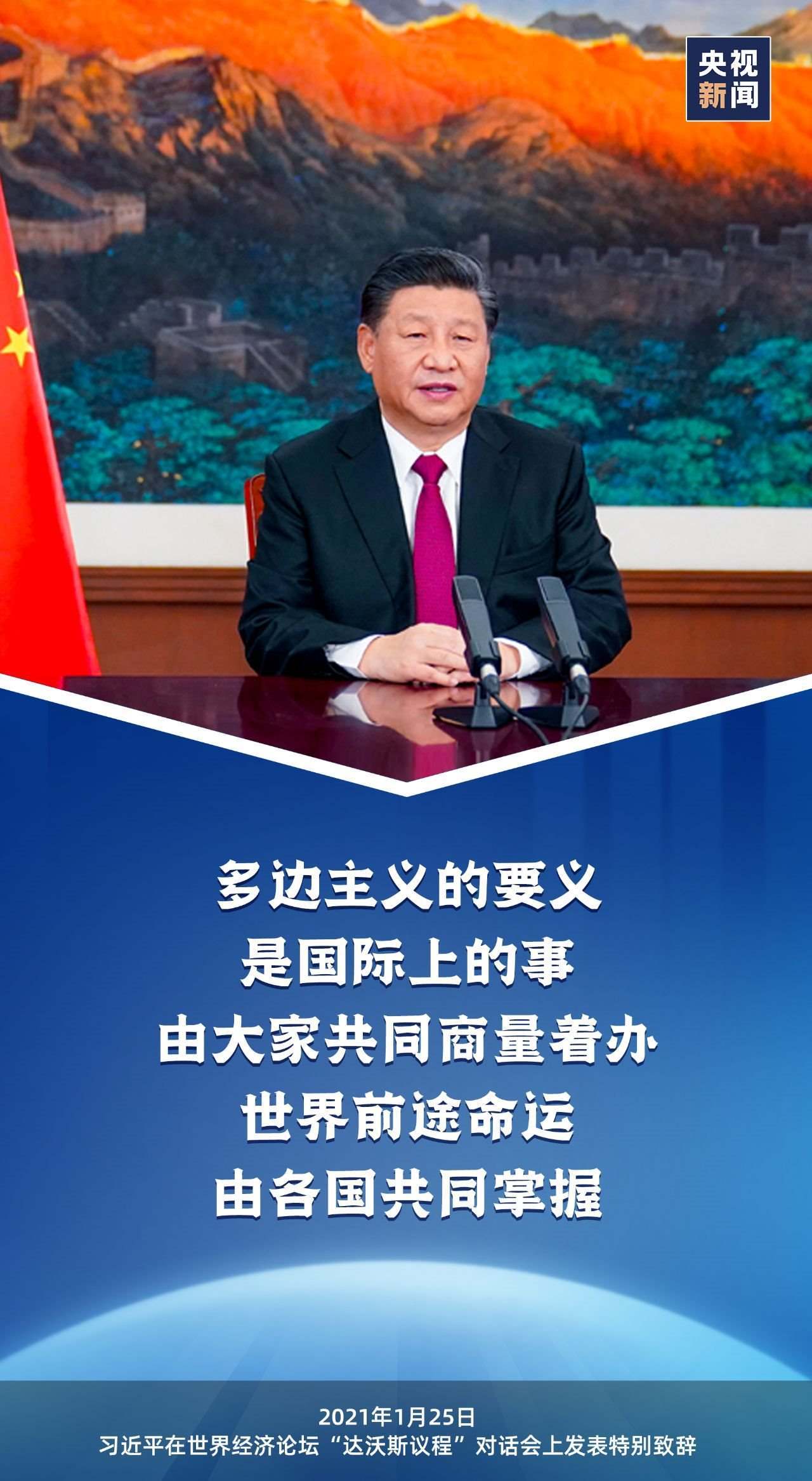 在2021年1月召開的世界經(jīng)濟論壇“達沃斯議程”對話會上,習近平主席發(fā)表特別致辭,再次強調(diào)踐行多邊主義,并指出“多邊主義的要義是國際上的事由大家共同商量著辦”。