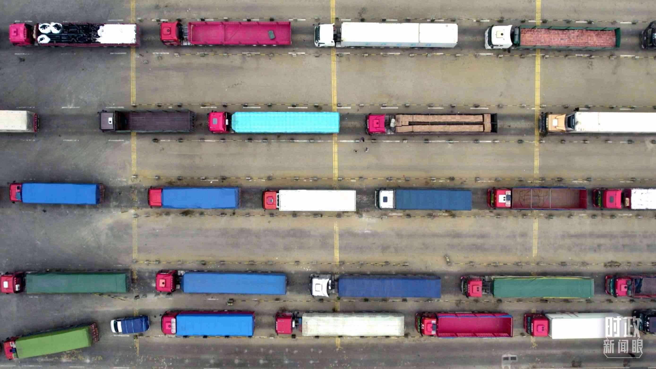 △徐聞港內(nèi)運(yùn)送貨物的車隊(duì)。(總臺(tái)央視記者范凱拍攝)