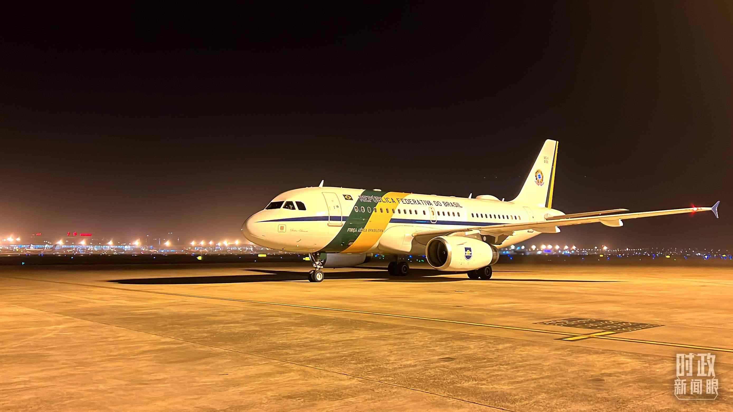 △盧拉總統(tǒng)乘坐的飛機抵達上海。(總臺央視記者楊新禹拍攝)