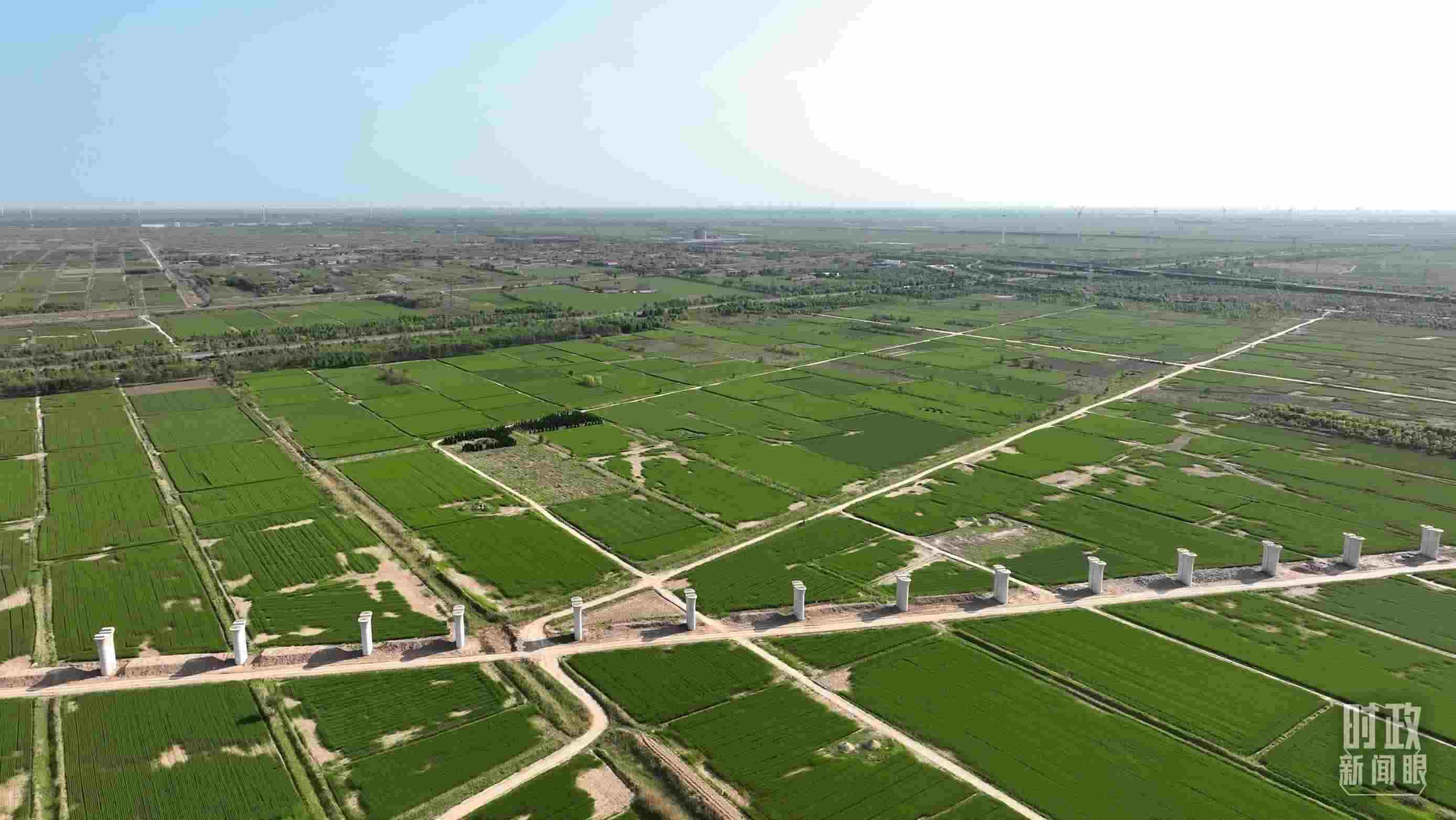 △俯瞰仙莊片區(qū)旱堿地麥田。(總臺(tái)記者郭永良拍攝)