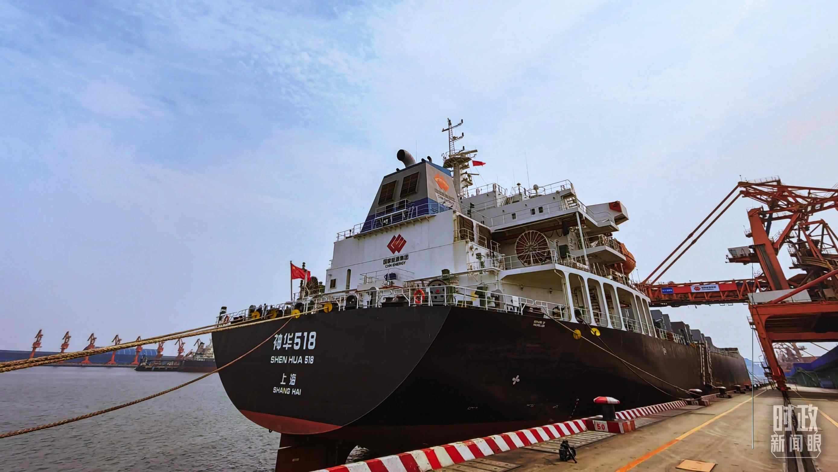 △??吭邳S驊港的神華518輪。(總臺(tái)央視記者張曉鵬拍攝)