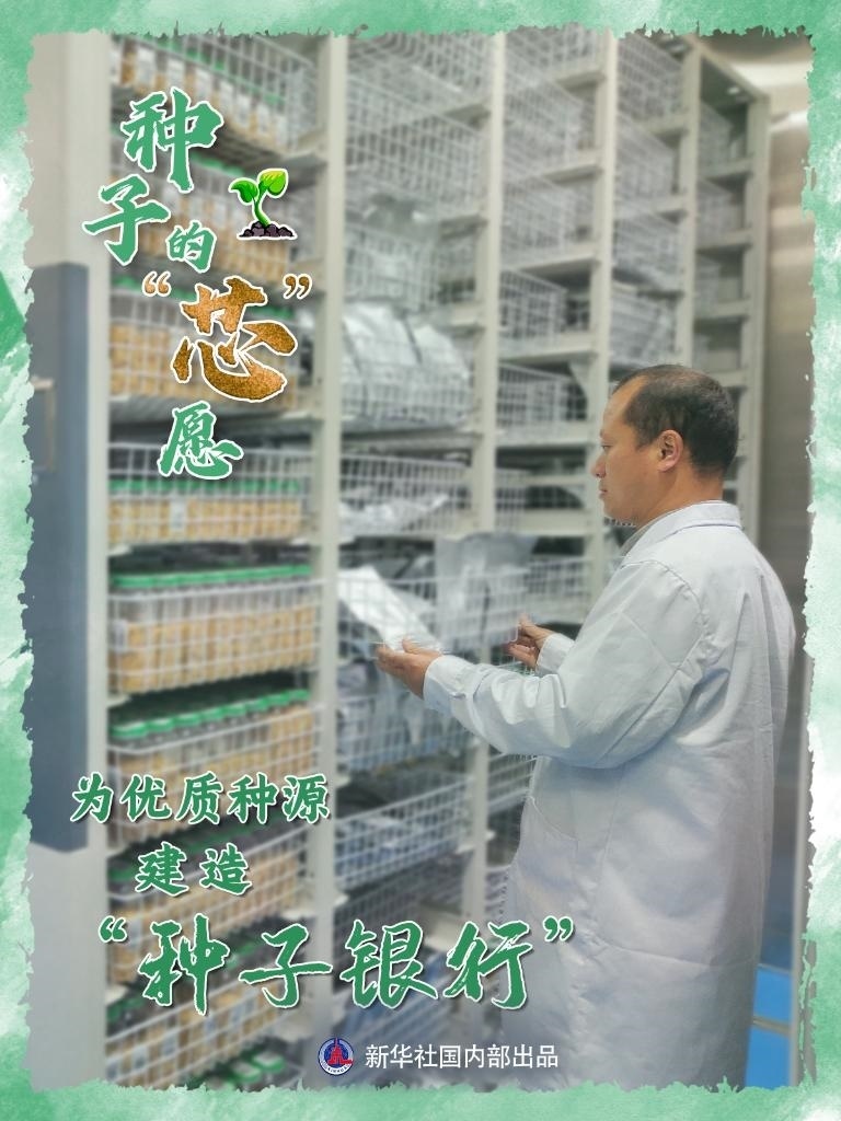 接收、去重、清選、干燥、芽率測定……最終,珍貴的種源會被裝入適合它的容器,貼上獨(dú)一無二的“身份證號碼”標(biāo)簽,進(jìn)入零下18攝氏度、濕度30%的冷凍艙中“冬眠”。如今,包括“貓耳兒豆角”在內(nèi)的近5萬份種源已存入“種子銀行”。
