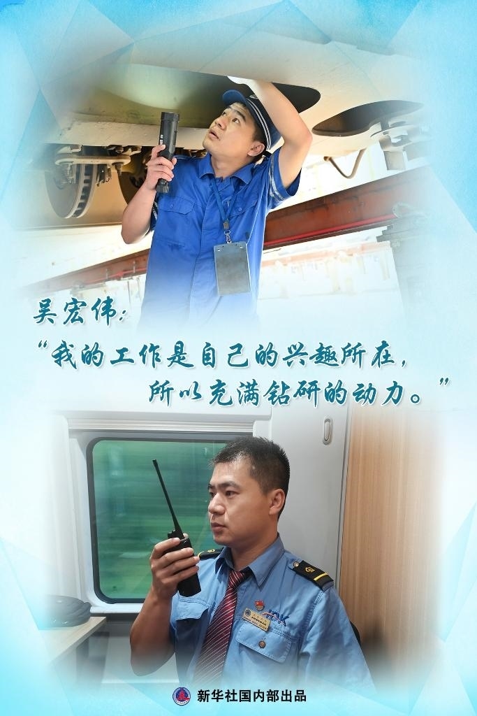 畢業(yè)于天津電子信息職業(yè)技術(shù)學(xué)院的吳宏偉,現(xiàn)在是一位高鐵的“安全擔(dān)當(dāng)”——隨車機(jī)械師。
