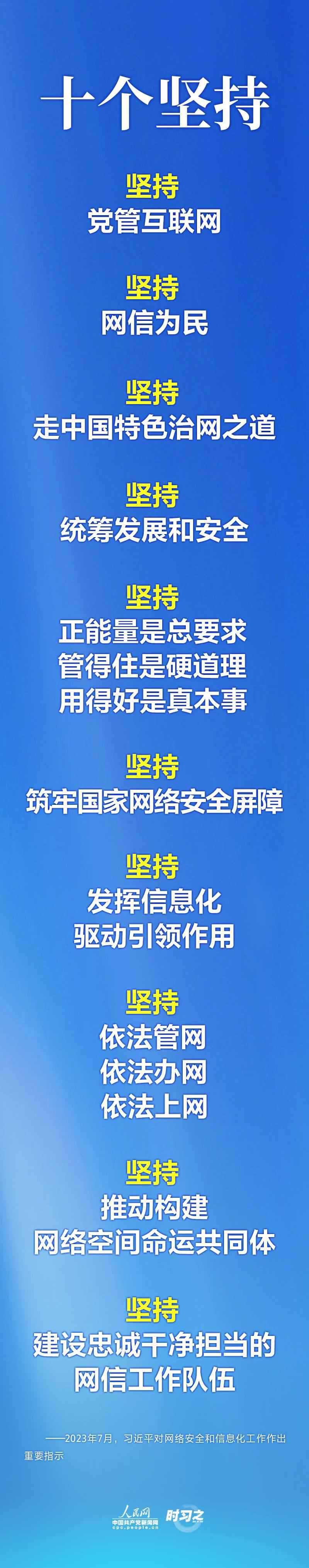 習(xí)近平總書記近日對(duì)網(wǎng)絡(luò)安全和信息化工作作出重要指示,鮮明提出網(wǎng)信工作“舉旗幟聚民心、防風(fēng)險(xiǎn)保安全、強(qiáng)治理惠民生、增動(dòng)能促發(fā)展、謀合作圖共贏”的使命任務(wù),明確“十個(gè)堅(jiān)持”重要原則,并對(duì)網(wǎng)信工作提出要求,為新時(shí)代新征程網(wǎng)絡(luò)強(qiáng)國建設(shè)提供了行動(dòng)指南。
