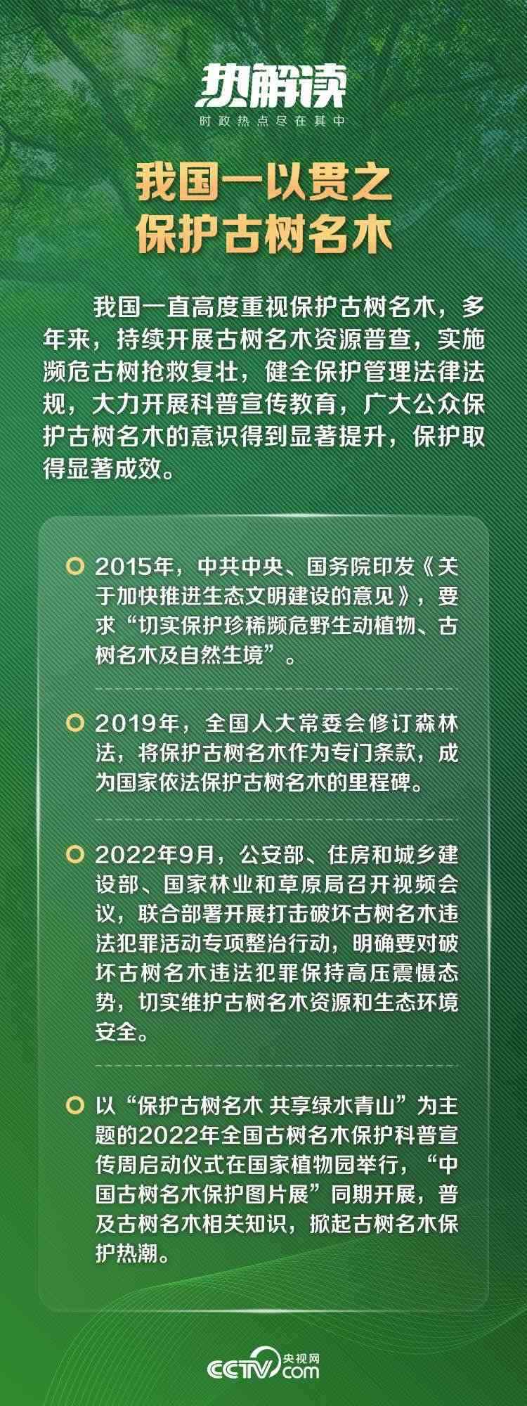 黨的十八大以來(lái),以習(xí)近平同志為核心的黨中央高度重視古樹名木保護(hù)工作。