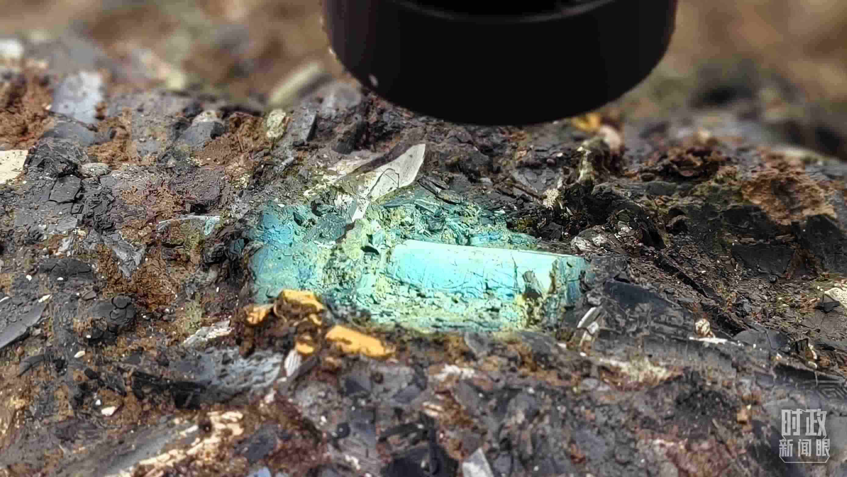 △顯微鏡下,三星堆文物的紋路清晰可見。(總臺央視記者王萌萌拍攝)