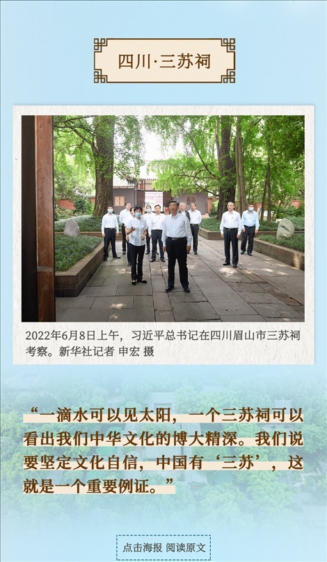 從四川三蘇祠到河南殷墟遺址,從山東孔府、孔子研究院到湖南大學岳麓書院,從甘肅嘉峪關(guān)關(guān)城到福建朱熹園,從山西云岡石窟到廣東潮州古城……考察文化遺產(chǎn)、探尋文明根脈,帶著深厚的歷史感,習近平總書記的“文化足跡”遍及全國。