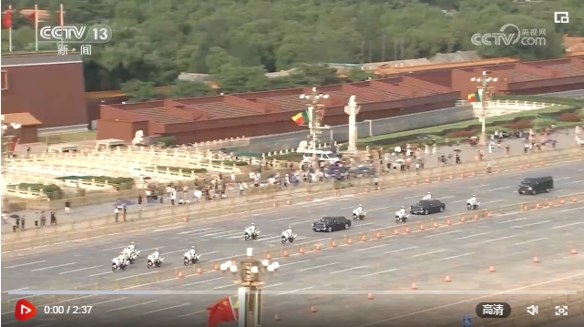 軍樂團(tuán)奏貝中兩國國歌,鳴禮炮21響。