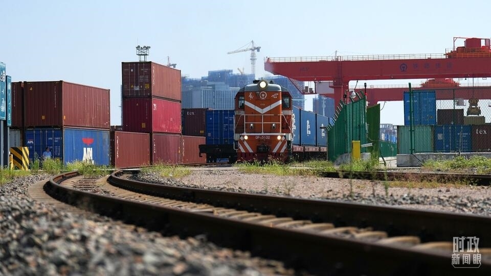 △從浙江義烏開出的中歐班列。(總臺(tái)國(guó)廣記者李晉拍攝)