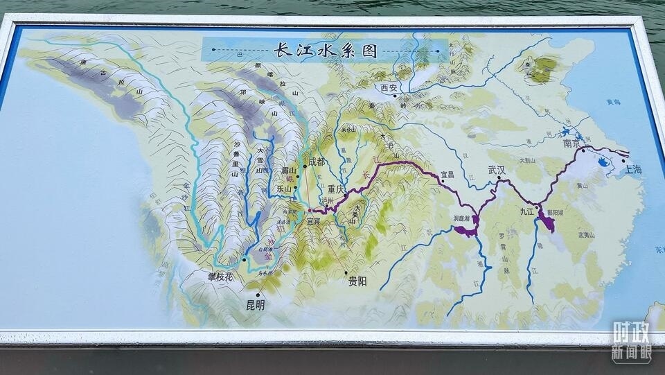△2020年6月,習(xí)近平在四川宜賓三江口考察。圖為現(xiàn)場(chǎng)展出的《長(zhǎng)江水系圖》。(總臺(tái)央視記者張宇拍攝)