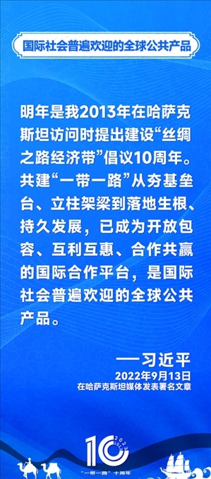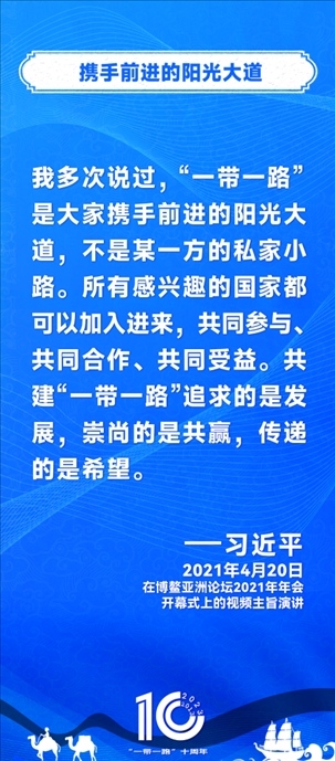 10年前,習(xí)近平主席提出共建“絲綢之路經(jīng)濟帶”和“21世紀(jì)海上絲綢之路”,即共建“一帶一路”倡議。過去10年來,習(xí)近平主席在多個場合發(fā)表講話和署名文章,為世界描繪了共建“一帶一路”互聯(lián)互通、合作共贏的宏偉藍(lán)圖。