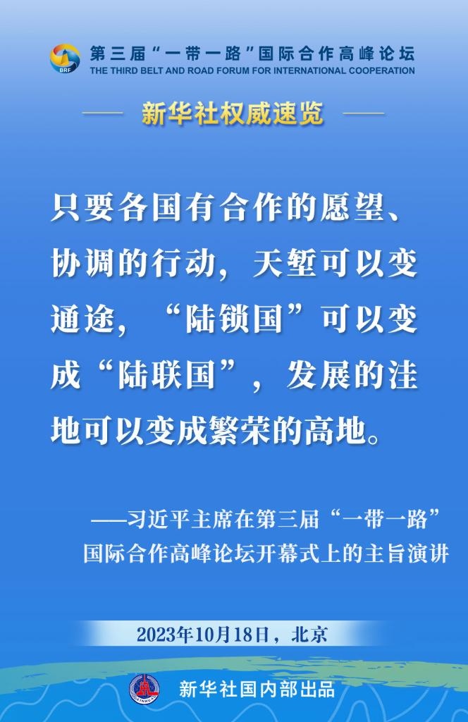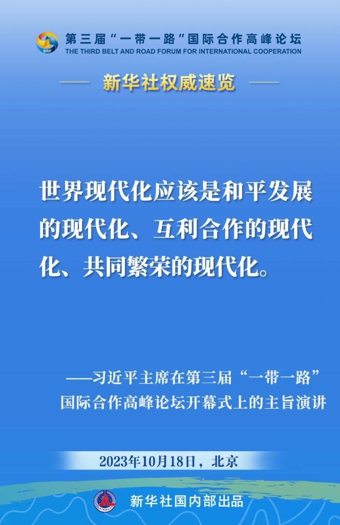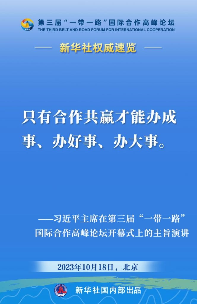 10月18日,國家主席習(xí)近平在第三屆“一帶一路”國際合作高峰論壇開幕式上發(fā)表主旨演講。一起來看金句。